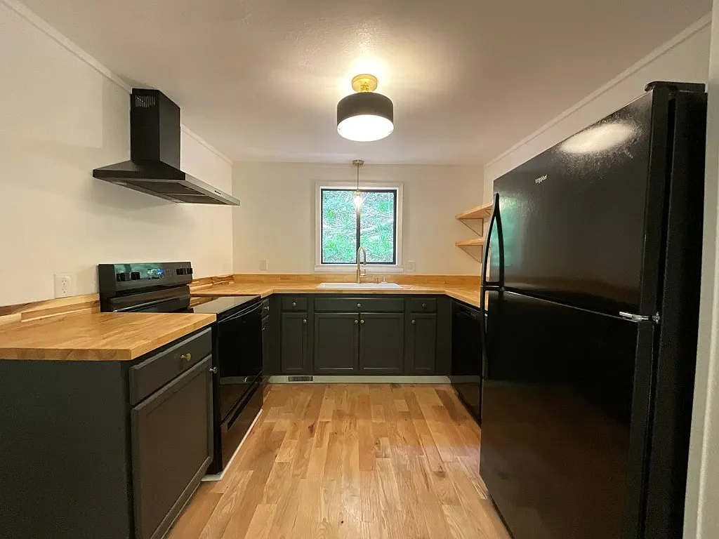 Brand-new kitchen offers butcher-block counters, new appliances, and abundant cabinetry